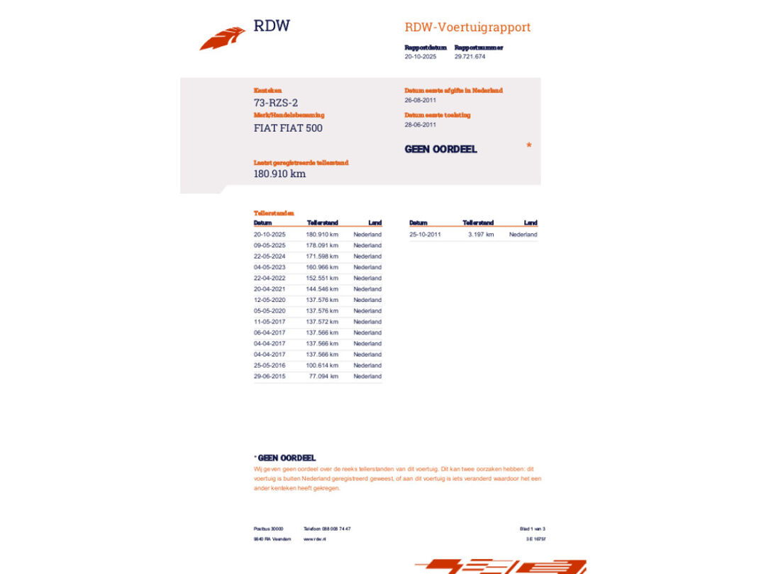 Wij leveren deze Fiat volledig rijklaar en 100% onderhouden af inclusief nieuwe APK, grote onderhoudsbeurt, 12 maanden Vakgarage Pechhulp garantie en 12 maanden BOVAG garantie. Kortom bent u opzoek naar een stijlvolle, tijdloze en betrouwbare Fiat 500 die rijklaar zonder bijkomende kosten wordt afgeleverd? Dan is dit de auto die u zoekt. Heeft u interesse of verdere vragen? Neemt u dan gerust contact met ons op, wij helpen u graag verder